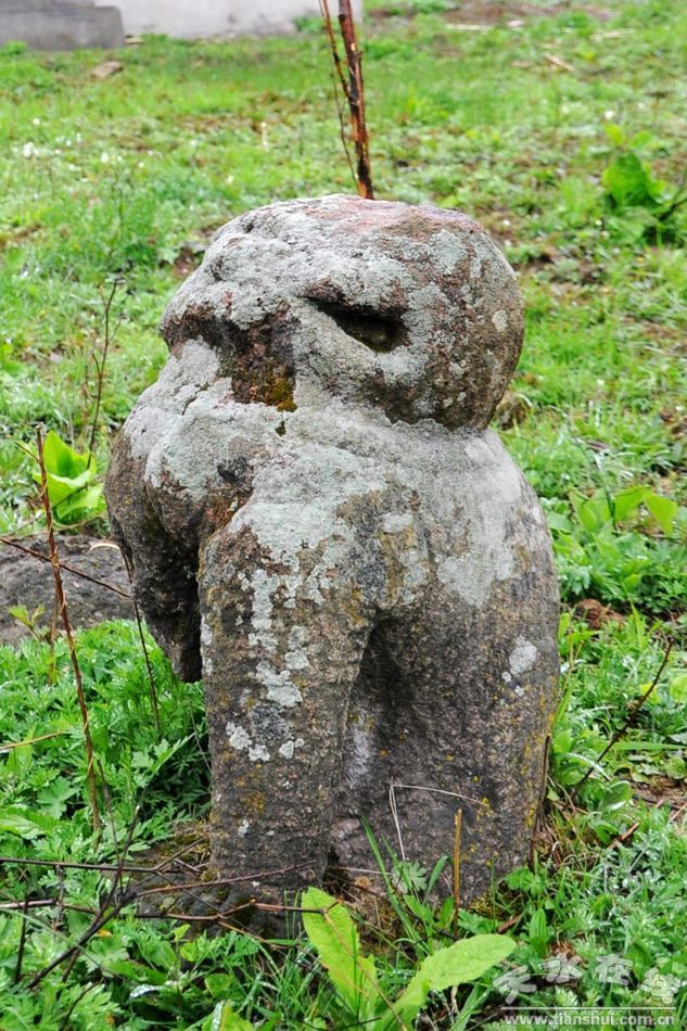 圖左為豎立在三皇廟后的華夏故土地圖取土紀念碑,圖右為守護三皇廟的石猴