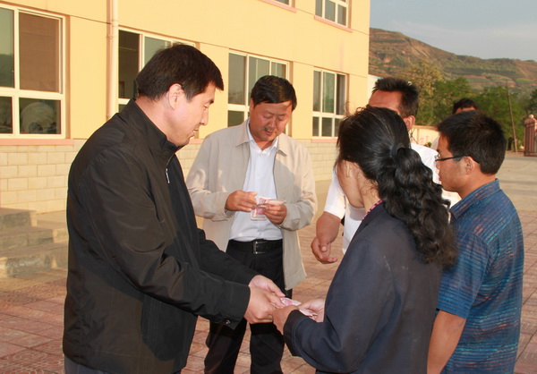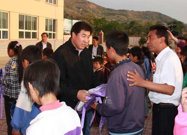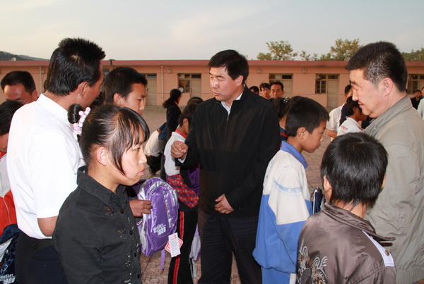 劉天波給青蓮附中困難學生發(fā)放書包等學習用品,并鼓勵他們要好好學習,爭當優(yōu)秀,學有所成,以更好的成績回報社會。