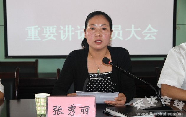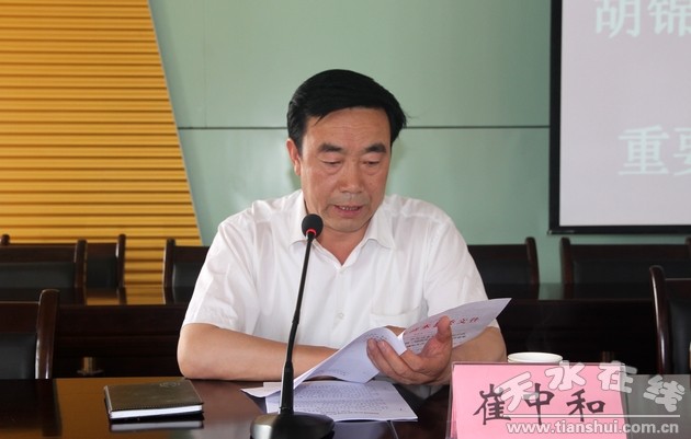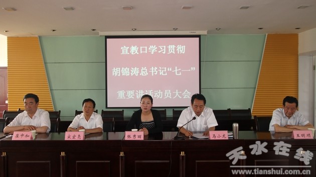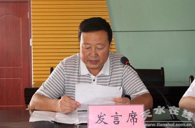 縣委宣傳部常務(wù)副部長崔中和宣讀中共清水縣委《關(guān)于學(xué)習(xí)貫徹胡錦濤總書記在慶祝中國共產(chǎn)黨成立90周年大會(huì)上講話的安排意見》