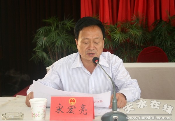 (縣人大常委會(huì)副主任宋洪亮宣讀《清水縣縣鄉(xiāng)兩級(jí)人民代表大會(huì)換屆選舉實(shí)施方案》)