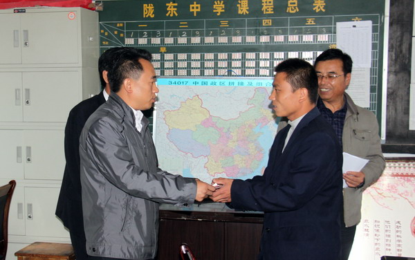 馬小龍先后深入到草川中學(xué)、草川學(xué)區(qū)、隴東中學(xué)、隴東學(xué)區(qū)等學(xué)校,認(rèn)真查看了學(xué)校周邊環(huán)境,了解了學(xué)校的困難,走進(jìn)教師辦公室親切的詢問(wèn)了教師的生活、學(xué)習(xí)和工作情況,并向奮戰(zhàn)在教育基層戰(zhàn)線的廣大教職員工致以節(jié)日的祝福和問(wèn)候。