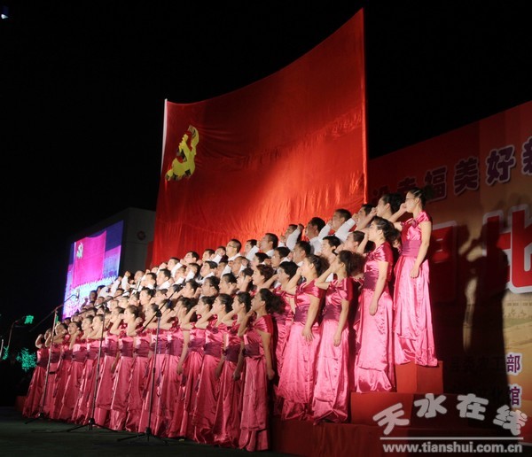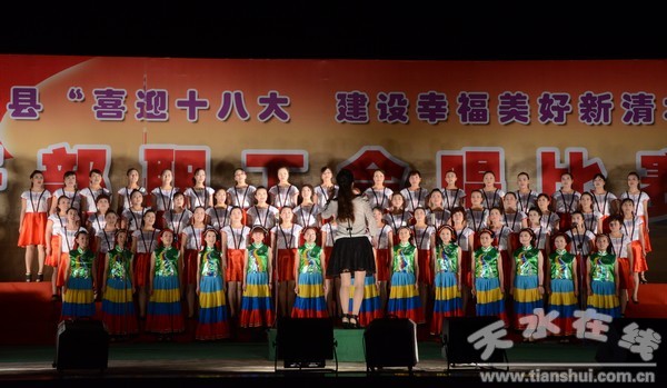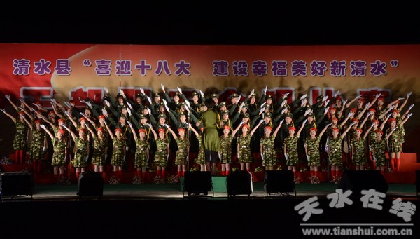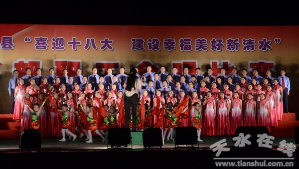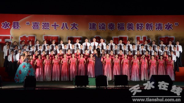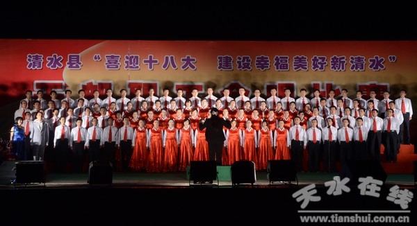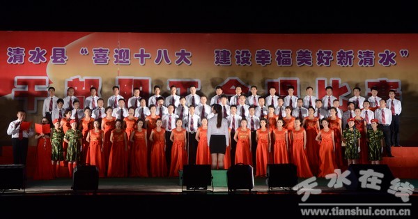 9月27日,清水縣“喜迎十八大,建設(shè)幸福美好新清水”教育系統(tǒng)干部職工合唱比賽在軒轅廣場(chǎng)進(jìn)行,來(lái)自縣六中、縣原泉小學(xué)、縣西關(guān)小學(xué)、縣一幼、縣五中、縣一中、縣三中、縣三幼、縣軒轅小學(xué)、縣東關(guān)小學(xué)、縣二幼和縣育苗幼兒園等城區(qū)12所學(xué)校代表隊(duì)上演了精彩的合唱曲目。清水縣四大組織全體在家領(lǐng)導(dǎo)及部分城鄉(xiāng)群眾共同觀看了合唱比賽。