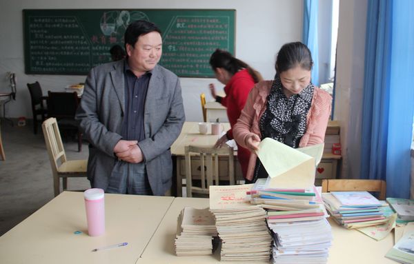 (在秦亭鎮(zhèn)百家中學(xué)查看學(xué)生作業(yè))