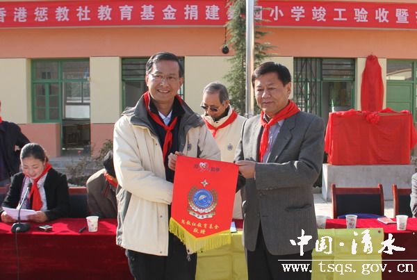 香港懲教社教育基金理事吳漢良、黃柏能、陳秀芳,甘肅省僑聯(lián)主席費(fèi)亞夫,省僑聯(lián)聯(lián)絡(luò)處處長(zhǎng)李偉,省僑聯(lián)聯(lián)絡(luò)處科長(zhǎng)谷云革,中共清水縣委常委、宣傳部長(zhǎng)張秀麗,副縣長(zhǎng)何敬忠出席捐贈(zèng)儀式;縣教體局、白沙鄉(xiāng)學(xué)區(qū)教師代表、白沙鄉(xiāng)桑園村群眾代表及桑園村全校師生參加了校舍竣工驗(yàn)收暨捐贈(zèng)儀式。