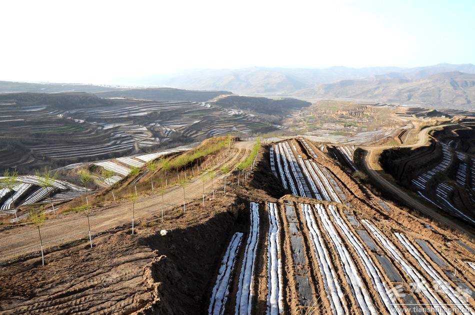 該基地涉及白沙、永清2鄉(xiāng)鎮(zhèn)17個行政村,集“修梯田、栽果樹、覆全膜、調(diào)結(jié)構(gòu)、促增收”為一體,整合農(nóng)綜、扶貧、林業(yè)、水利等項目,實施山、水、林、田、路、渠、草、果及套種九項綜合治理,大規(guī)模、整流域、高標(biāo)準(zhǔn)推進核桃產(chǎn)業(yè)示范基地建設(shè),修梯田2萬畝、栽果樹4.2萬畝、修農(nóng)路60公里、建渠系 30公里、水窖80多座、集流場2處1.5萬平方米,綠化農(nóng)路30公里、荒山荒坡1000畝,種草2000畝,并投入1860萬元實施上水工程建設(shè)。今年新建干鮮果基地6000畝,配套完成全膜玉米種植3萬畝。