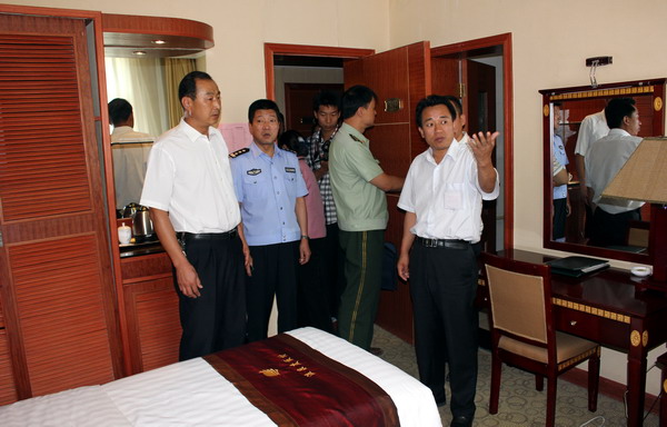 7月19日,中共清水縣委常委、常務副縣長馬小龍帶領縣委辦、政府辦、公安局、衛(wèi)生局、電力局、消防隊、食藥監(jiān)局、溫泉游客中心等相關部門負責人,就接待賓館、飯店消防、安全保衛(wèi)、食品衛(wèi)生管理等工作進行了督查指導。