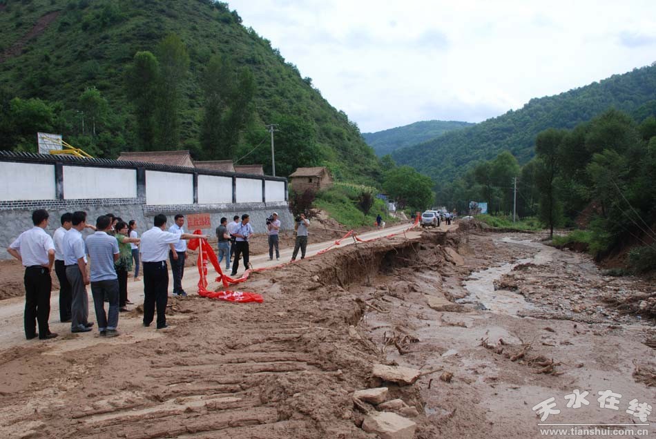 7月24日,市委常委、紀(jì)委書(shū)記李美華、市中級(jí)人民法院院長(zhǎng)馬忠福、市長(zhǎng)助理呂淙江、市委副秘書(shū)長(zhǎng)熊衛(wèi)三在清水縣領(lǐng)導(dǎo)劉天波、馬越垠、牛永禎的陪同下,先后來(lái)到莊天二級(jí)公路、清社公路、草川鋪鄉(xiāng)腰林村、淸隴公路、莊天二級(jí)公路清水支線、紅堡鎮(zhèn)蔡灣村等受災(zāi)嚴(yán)重的村莊與道路、實(shí)地察看災(zāi)情,詳細(xì)了解救災(zāi)工作和受災(zāi)群眾生產(chǎn)生活情況。