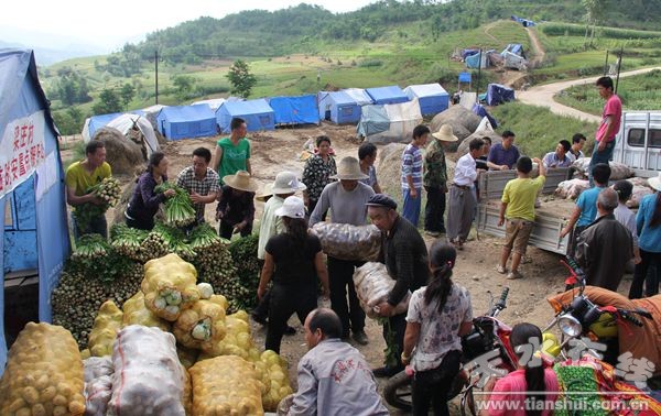 8月1日,清水縣農(nóng)業(yè)局把新鮮蔬菜送到了隴東鄉(xiāng)受災(zāi)群眾安置點(diǎn)!坝行迈r蔬菜吃了!真的要感謝黨和政府的關(guān)懷!”住在隴東鄉(xiāng)梁莊村臨時(shí)安置點(diǎn)的受災(zāi)群眾感慨地說(shuō)。