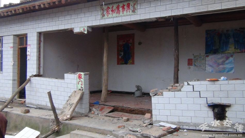 清水縣豐望鄉(xiāng)磨上咀新村地面嚴重下陷房屋倒塌