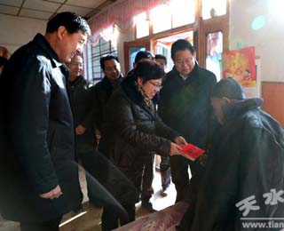 1月13日,市委常委、紀委書記李美華,副市長張建杰,市政協(xié)副主席王振宇一行深入清水縣開展節(jié)前慰問活動,把黨和政府的關(guān)懷與溫暖送到基層群眾當中,祝愿大家度過一個溫暖祥和的新春佳節(jié)。清水縣委書記劉天波、縣委常委、紀委書記牛永禎、縣委常委、常務副縣長馬小龍陪同。