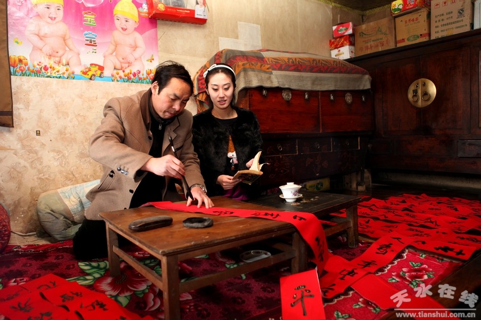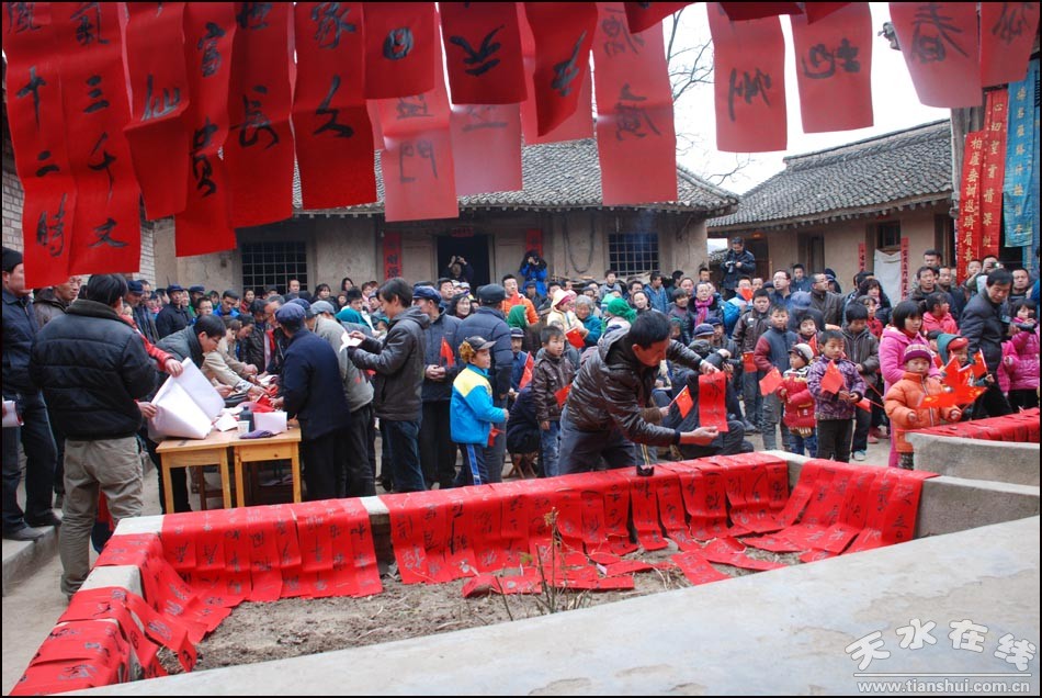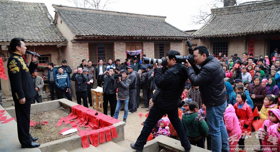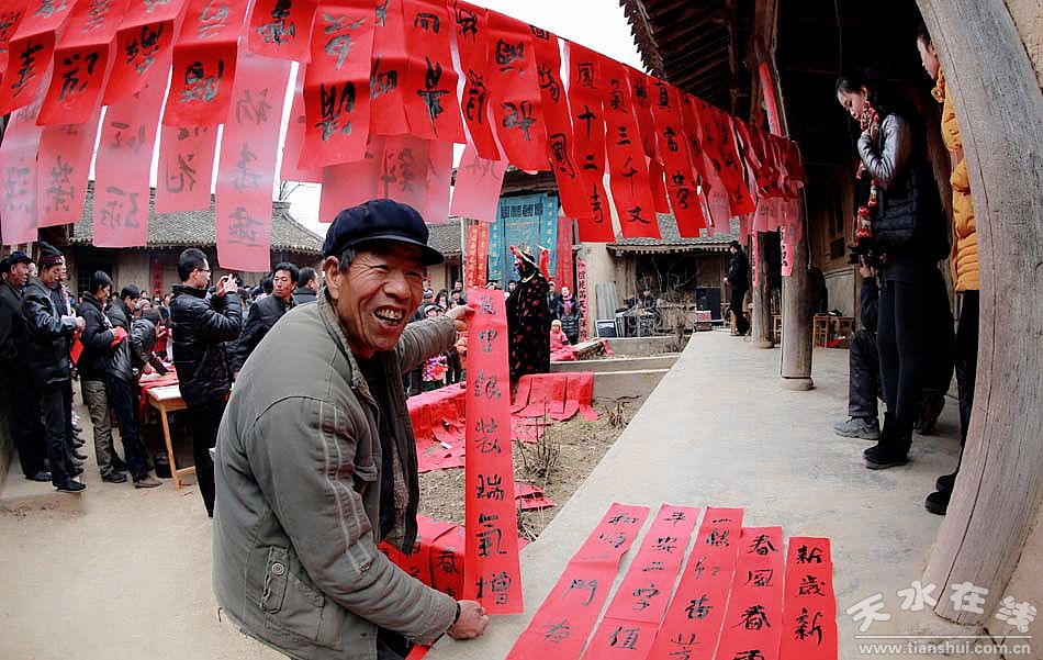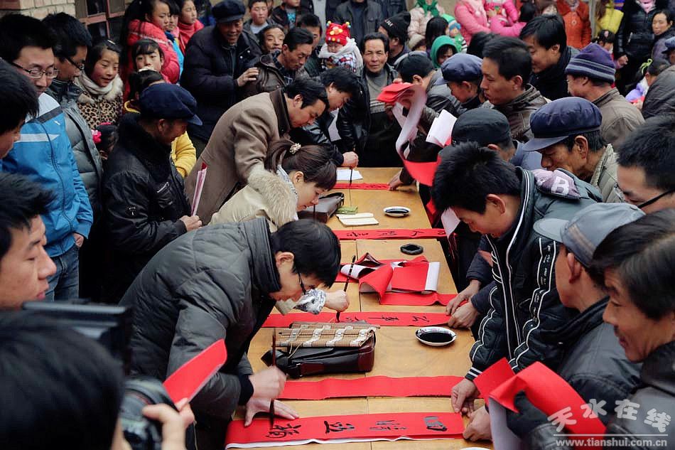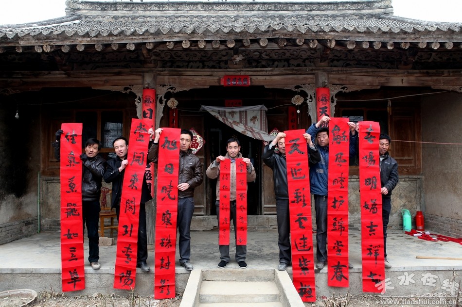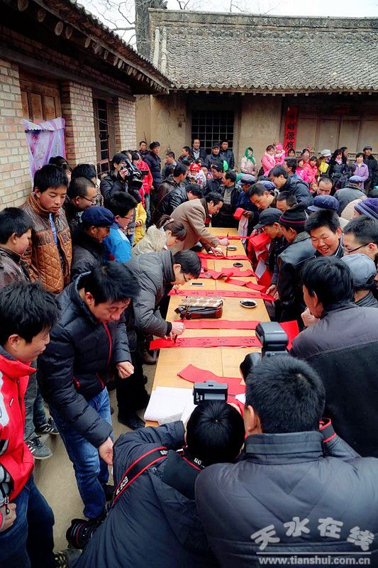 1月18日(農(nóng)歷臘月十八日)上午8時(shí)30分,天水在線帶領(lǐng)邀請(qǐng)到的天水市書法家協(xié)會(huì)副主席周宇春、天水市美術(shù)家協(xié)會(huì)副主席趙暉等書法家,天水市歌舞團(tuán)青年男高音楊濤、天水市秦劇團(tuán)、新天視文化傳播中心、麥積區(qū)金孔雀藝術(shù)中心的演職人員和天水在線部分博主、秦州區(qū)攝影家協(xié)會(huì)、麥積區(qū)攝影家協(xié)會(huì)部分會(huì)員前往中國(guó)傳統(tǒng)村落——清水縣賈川鄉(xiāng)梅江村開展“寫春聯(lián)、送文藝”拜早年活動(dòng)。