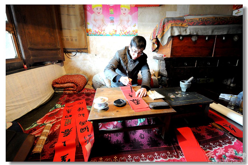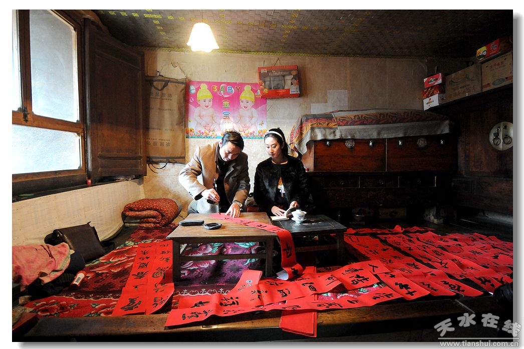 (在炕頭上為村民寫(xiě)春聯(lián))
