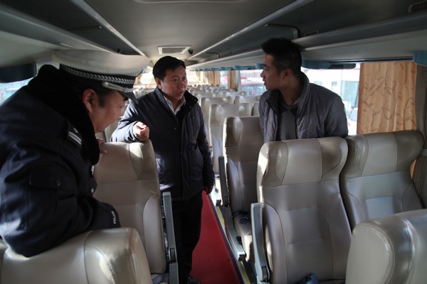 在順達公司車站,馬越垠在發(fā)往蘭州的班線汽車上與司機親切交談。馬越垠說,駕駛員是車輛的操控者,更是安全行駛的主要保障者,要加強車輛的維修保養(yǎng),堅決阻止易燃易爆品進入車內;要從自身做起,不超速、不超載、不疲勞駕駛、不酒后駕駛。馬越垠強調,職能部門要協(xié)同作戰(zhàn),對駕駛員資格、車輛年審狀況、車輛報廢年限等進行詳細檢查排查,對不符合運營條件的車輛要堅決停運,確保節(jié)日期間人民群眾的出行順暢和生命財產安全。