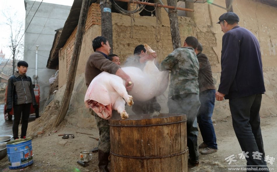 每年臘月,家家戶戶院子里基本都會有一頭喂養(yǎng)一年的肥豬,用四條粗壯的胖腿拖著肉墩墩的身子,扭著大屁股,一晃一晃地在院落里轉(zhuǎn)悠。隨著年關(guān)的臨近,安逸的農(nóng)家院落不時傳來年豬的低沉嚎叫聲,靜謐的鄉(xiāng)村沉浸在那過年的甜蜜幸福中。