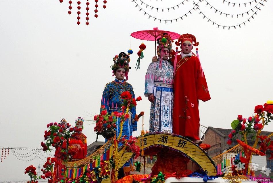 馬社火是過春節(jié)最普遍的一種民俗文化活動,一般都騎著騾馬,身穿戲裝,化妝成戲劇人物走街串巷,多在正月初五、上九、十五三天,也有一些地方在正月十二、十六等舉行。在清水,除了馬社火,也有車載社火。