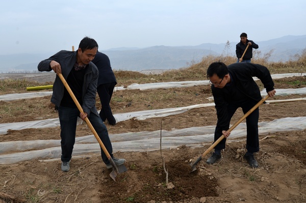 (政府機關(guān)干部職工開展西靈山核桃產(chǎn)業(yè)建設(shè))