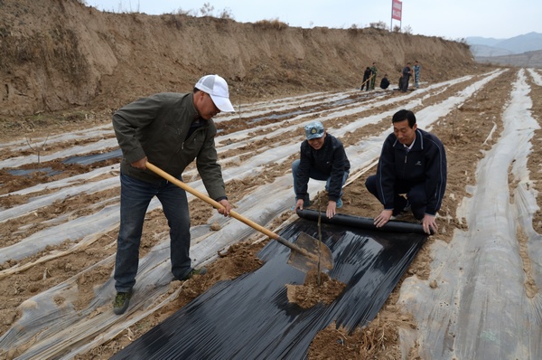 在建園現(xiàn)場,蔡俊杰與政府機關(guān)干部職工一起奮戰(zhàn)在春季建園一線,率先帶頭示范,從整地、除草、修復營養(yǎng)帶、補植、澆水覆膜、收集廢舊農(nóng)膜,幫助當?shù)厝罕姾透刹柯毠ぶv解果園管理技術(shù),創(chuàng)建優(yōu)質(zhì)核桃示范園,以提升西靈山現(xiàn)代科技示范園區(qū)建設(shè)的科技水平。
