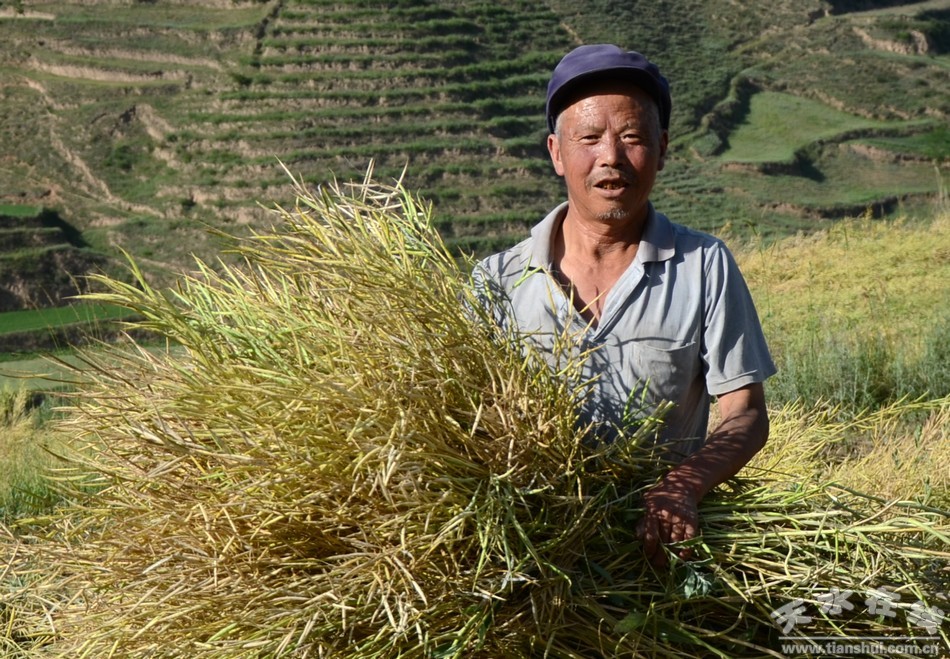 時下正值油菜成熟的季節(jié),在清水縣境內(nèi),隨處可見油菜豐收的喜人景象。在郭川鄉(xiāng)、金集鎮(zhèn)等鄉(xiāng)鎮(zhèn),隨處可以見到農(nóng)民朋友揮舞著鐮刀搶收油菜籽的景象,片片金黃的油菜輝映著張張喜悅的笑臉。