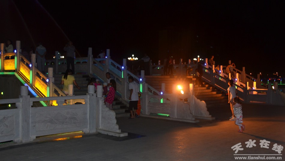 夏天的夜晚,清水軒轅湖公園里,噴泉水伴著七彩燈光,隨著音樂聲此起彼伏,孩子們在水邊高興地打鬧、嬉戲,大人們盡情地的享受著噴泉邊清涼的水霧,觀賞著公園內(nèi)的美麗景色。