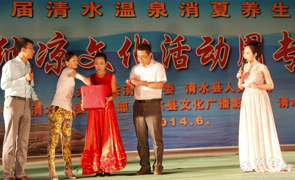 據(jù)悉,清水縣消夏納涼文化活動(dòng)周是敦煌行·絲綢之路國際旅游節(jié)第二屆清水溫泉消夏養(yǎng)生旅游節(jié)的重要活動(dòng)之一。該活動(dòng)由清水縣委、縣政府主辦,縣委宣傳部、縣文廣局、教體局承辦。