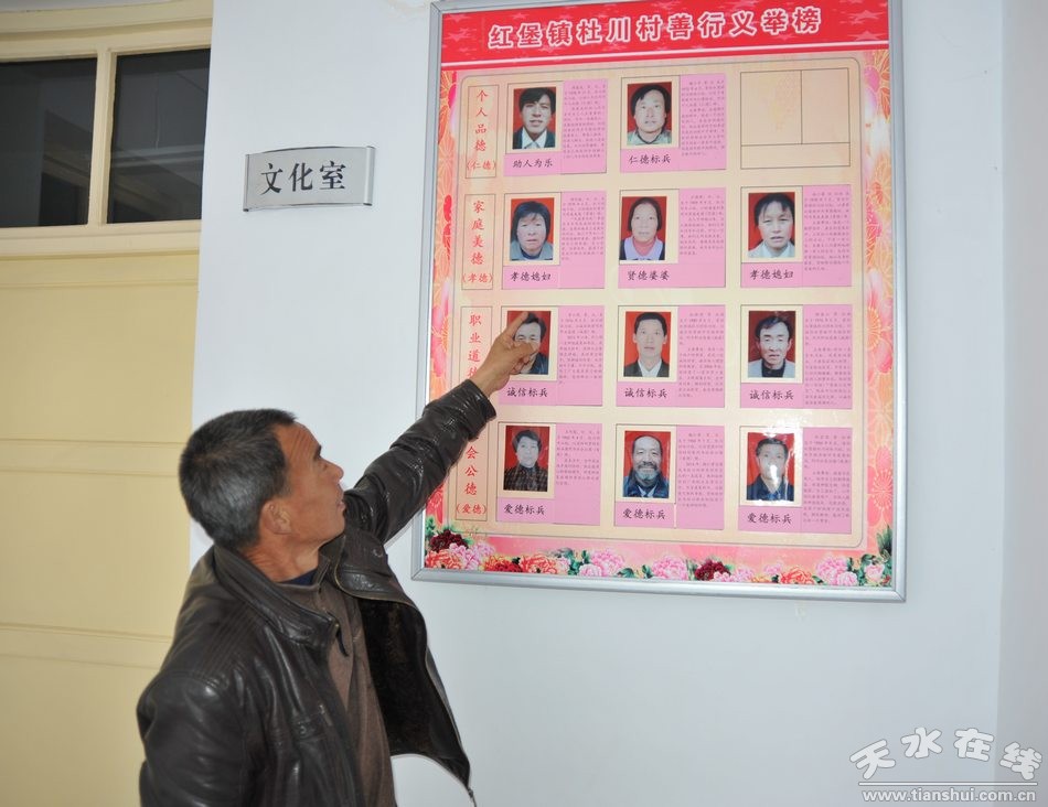 助人為樂、仁德標兵、孝德媳婦、賢德婆婆、誠信標兵、愛德標兵......在杜川村的善行義舉榜,一個個不同類型的好人,他們的名字、照片和感人事跡都在榜單上向村民們展示!八麄兌际谴迕駛冃闹械暮萌耍彩俏覀兇宓恼芰俊,杜川村村委會主任指著村上的善行義舉榜說。