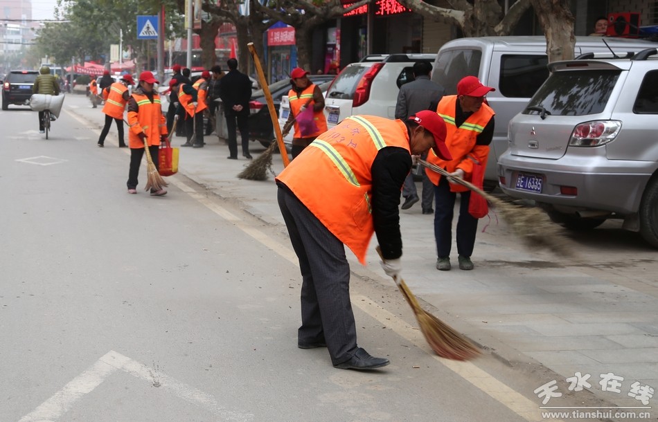 “同志,請不要把煙頭扔在地上。”“小朋友,喝完的飲料瓶要放在垃圾箱里!薄袄习,臟水不能倒在人行道上。”當(dāng)日,清水大街小巷一群頭戴小紅帽、身穿義工服的環(huán)境衛(wèi)生志愿服務(wù)隊正在在進行文明引導(dǎo),糾正部分市民的不文明行為。同時,參加活動的志愿者們自備掃把、鏟子、編織袋等清掃工具,對公交站牌和馬路護欄的野廣告、綠化帶內(nèi)的衛(wèi)生死角、垃圾桶周邊地面的污垢等進行了徹底清理。在廣大志愿者的辛勤勞動下,縣區(qū)大街小巷的公交站牌、馬路護欄、垃圾箱等公共設(shè)施“煥然一新”,地面整潔了,綠化帶里的小草更綠了。