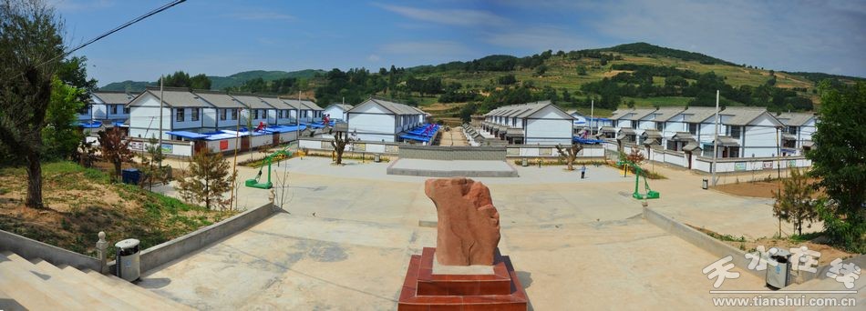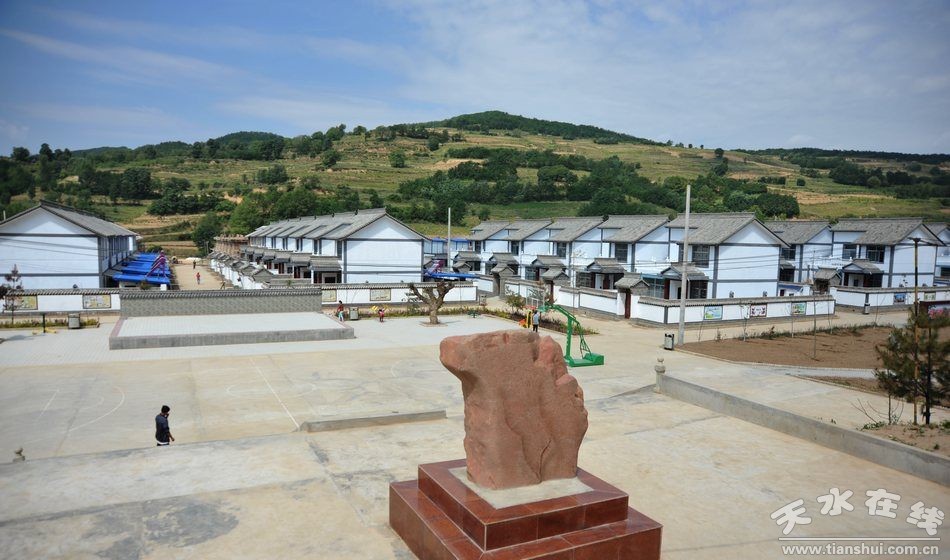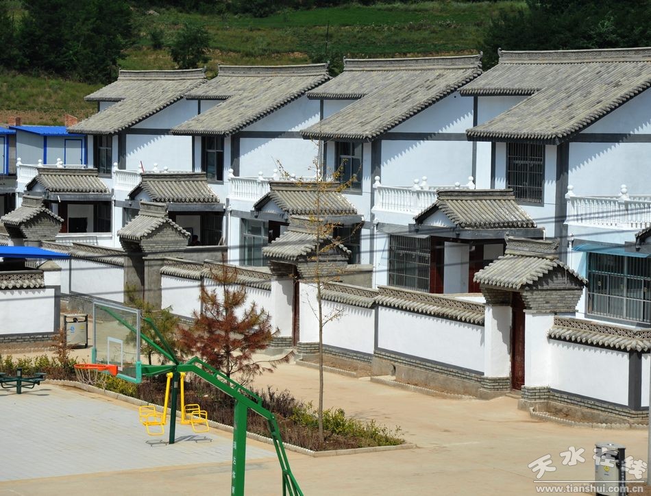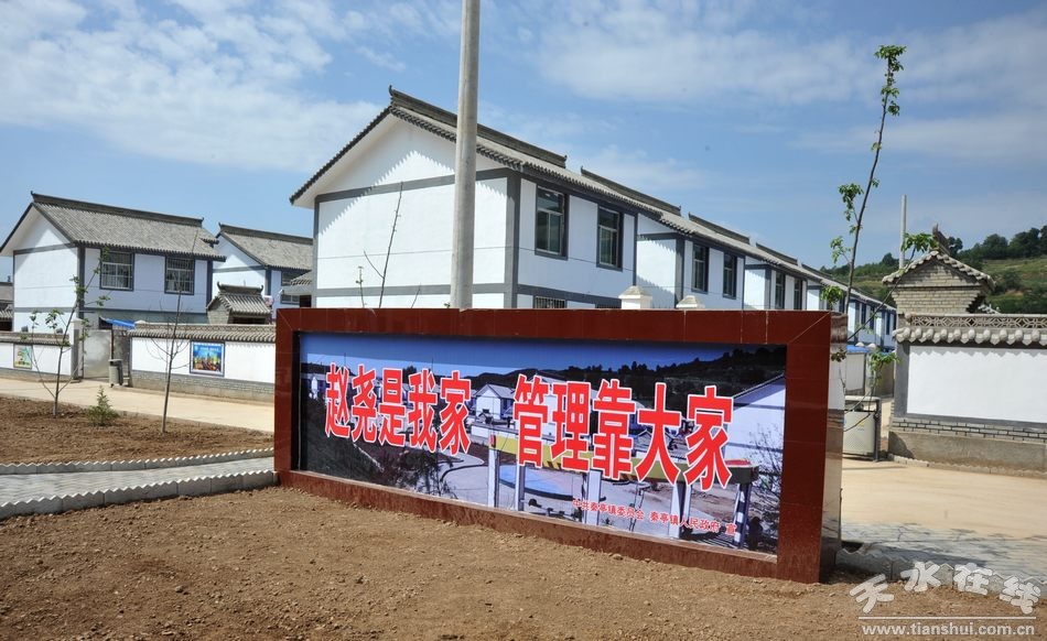 清水縣秦亭鎮(zhèn)趙堯一、三、四組地處鎮(zhèn)政府東北部3公里處的山坡高寒陰濕地帶,山大溝深,吃水、行路、就醫(yī)、上學(xué)難的問題長期困擾著當(dāng)?shù)厝罕。在“雙聯(lián)”政策扶持下,秦亭鎮(zhèn)趙堯村依托易地扶貧搬遷等項(xiàng)目,在繼趙堯二組搬遷新村后,于2013年初將趙堯一、三、四組列入省發(fā)改委易地扶貧搬遷項(xiàng)目并啟動(dòng)建設(shè),目前70戶農(nóng)戶的新居建設(shè)全面完成,巷道、院子硬化完畢,供排水、沼氣、太陽能路燈、文化廣場(chǎng)、花園及村莊綠化、建身器材、垃圾箱一應(yīng)俱全。