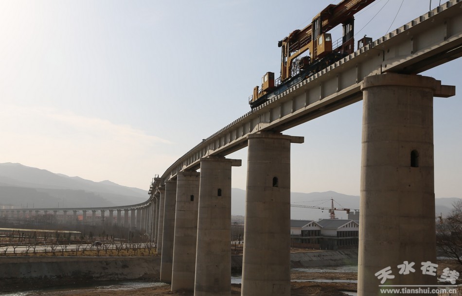 天平鐵路清水縣城段鐵軌正在加快鋪設(shè)(組圖)