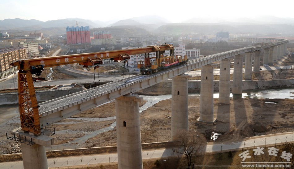 天平鐵路清水縣城段鐵軌正在加快鋪設(shè)(組圖)