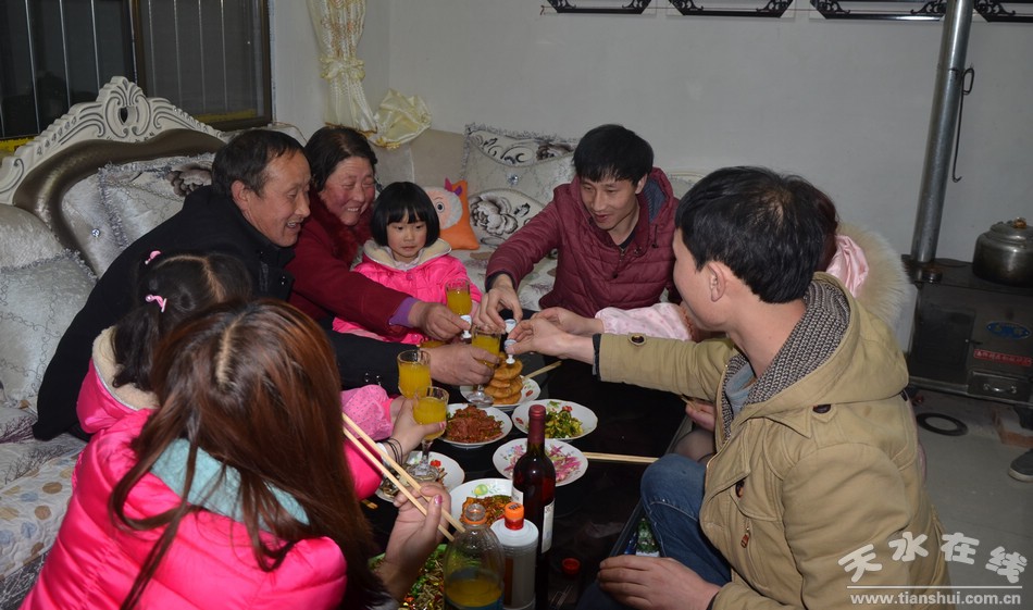 走進(jìn)清水縣白沙鄉(xiāng)馬溝新村,新建成的兩層別墅式小洋樓寬敞明亮,馬溝新村高高掛起的燈籠洋溢著喜氣,處處透著濃濃的年味。走進(jìn)藺建明家,屋內(nèi)一樓的客廳擺放著嶄新的沙發(fā)、茶幾、電視等家具,藺建民一家人正坐在亮堂的客廳里,歡天喜地的看著兒子結(jié)婚時(shí)錄制的光碟,吃著年夜飯,滿屋歡聲笑語(yǔ),叫人好不羨慕。