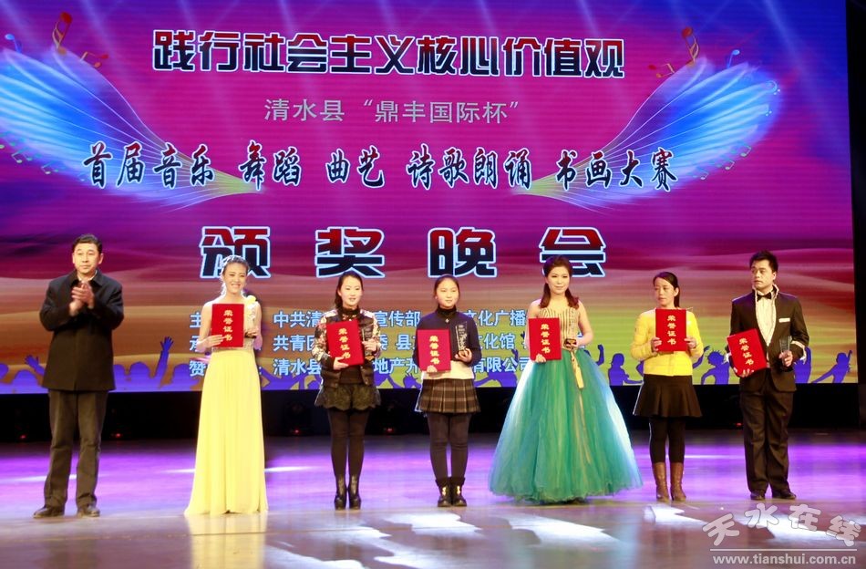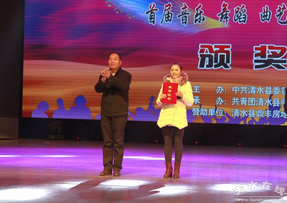 (清水縣人大常委會副主任劉志偉為聲樂、器樂二等獎獲得者頒獎)