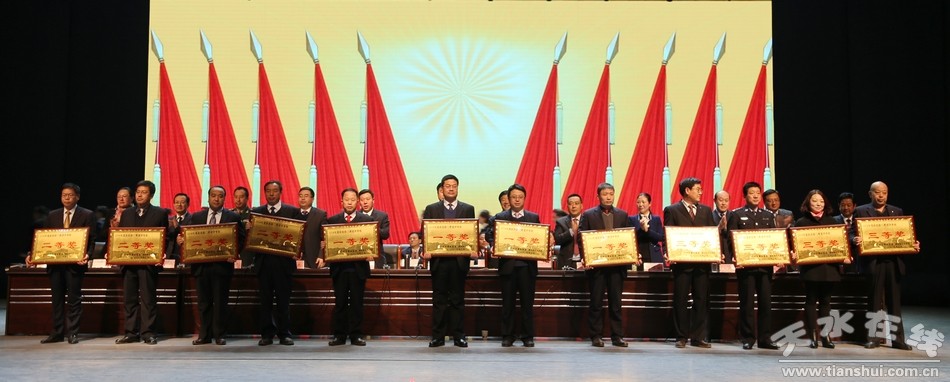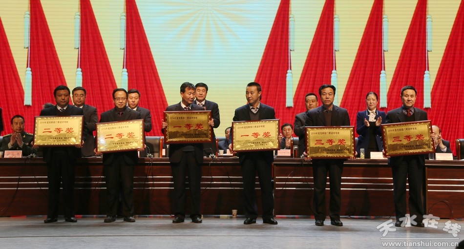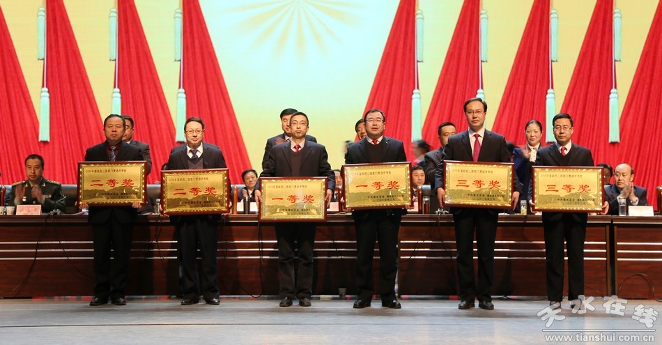 2014年,全縣上下深入實(shí)施“5551”發(fā)展戰(zhàn)略,主動(dòng)適應(yīng)經(jīng)濟(jì)發(fā)展和作風(fēng)建設(shè)新常態(tài),經(jīng)濟(jì)社會(huì)發(fā)展步伐顯著加快,主要指標(biāo)在全市的位次明顯前移,圓滿完成了全年的各項(xiàng)工作任務(wù),在推動(dòng)經(jīng)濟(jì)提質(zhì)增效,統(tǒng)籌城鄉(xiāng)發(fā)展、保障改善民生方面取得了顯著成效,為進(jìn)一步激發(fā)全縣人民熱愛清水、建設(shè)清水、發(fā)展清水的巨大熱情,鼓舞全縣上下爭先創(chuàng)優(yōu)、追求卓越、勇攀高峰的干勁,縣委、縣政府對(duì)縣文廣局、文明辦、軒轅大帝劇組、秦亭鎮(zhèn)分別授予了特別貢獻(xiàn)獎(jiǎng),對(duì)2014年度綜合目標(biāo)管理責(zé)任書考核前6名的白沙鄉(xiāng)、永清鎮(zhèn)、白駝鎮(zhèn)、紅堡鎮(zhèn)、秦亭鎮(zhèn)、賈川鄉(xiāng)和2014年度綜合目標(biāo)管理責(zé)任書考核前6名的黨群部門縣委辦、組織部、人大辦、宣傳部、紀(jì)檢委、政法委及考核前12名的政府部門政府辦、發(fā)改局、財(cái)政局、國土局、水務(wù)局、教體局、文廣局、扶貧辦、交通局、公安局、統(tǒng)計(jì)局、審計(jì)局以及考核前3名的政府部門二級(jí)單位、前3名的院校、站所,前5名的省市垂管單位進(jìn)行了表彰獎(jiǎng)勵(lì)。會(huì)議還兌現(xiàn)了2014年度招商引資,人口和計(jì)劃生育、項(xiàng)目工作綜合目標(biāo)管理責(zé)任書。表彰命名了2014年度精神文明建設(shè)先進(jìn)單位和示范村,命名了2014年度平安單位、平安鄉(xiāng)鎮(zhèn)和無邪教鄉(xiāng)鎮(zhèn)、行政村。