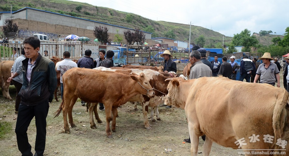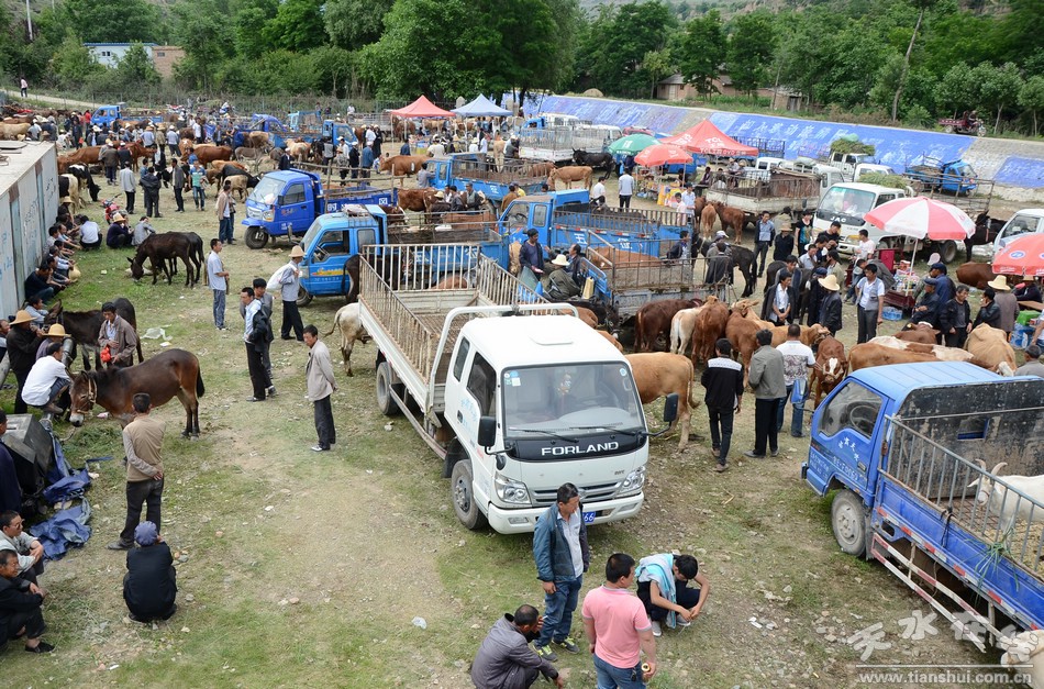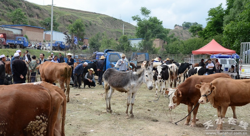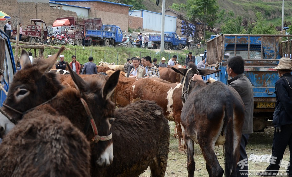 據(jù)牲畜交易市場(chǎng)管理人員介紹,清水縣每年夏季物資交流會(huì)活畜交易自農(nóng)歷四月二十八開始,前后持續(xù)十天,交易種類主要有騾、馬、驢、牛、羊等家畜。今年交易開始三天來(lái),日平均交易量數(shù)約1000多頭(匹、只),日平均交易額近150多萬(wàn)元?蜕讨饕獊(lái)自山東、河北、河南、陜西、寧夏,甘肅平?jīng)、隴南及天水等地,交易范圍廣、規(guī)模大。