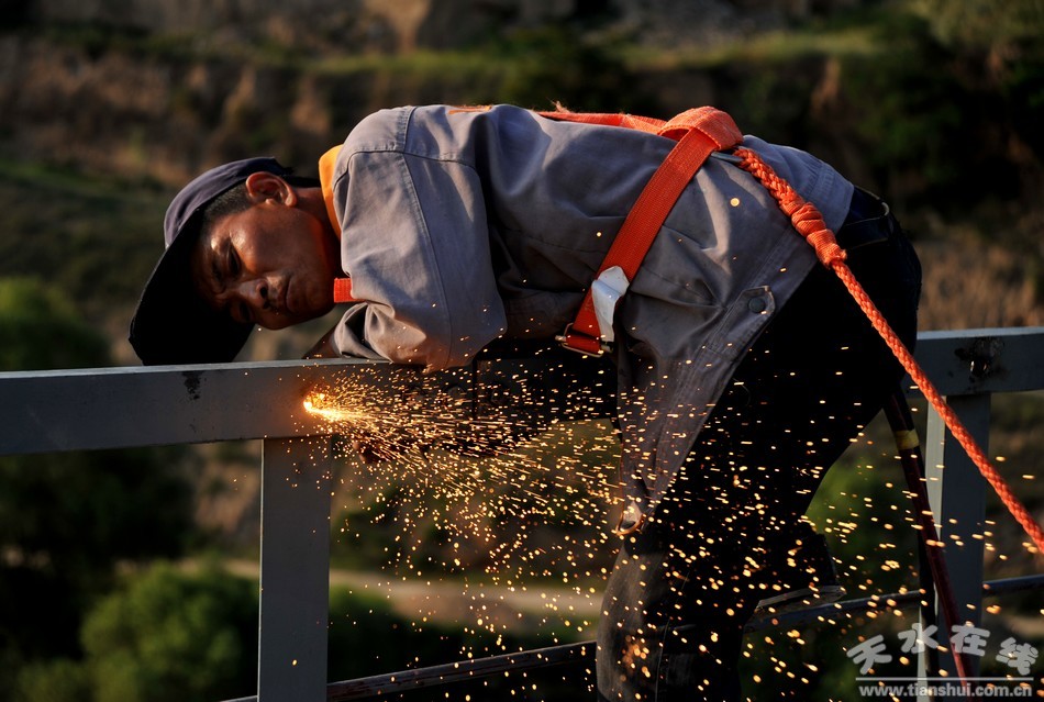 近日,筆者在天平鐵路清水特大橋上看到,工人們正在高空焊接鐵道護欄,目前天平鐵路清水段建設工程已進入了收尾階段。