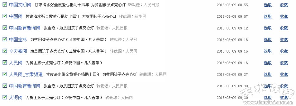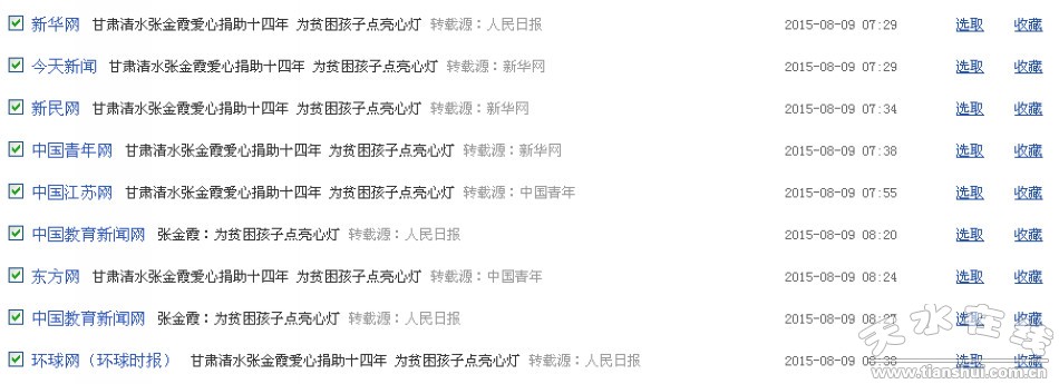 (人民日?qǐng)?bào)報(bào)道張金霞愛(ài)心事跡后,短短半天時(shí)間,引來(lái)全國(guó)40多家媒體紛紛轉(zhuǎn)載報(bào)道)