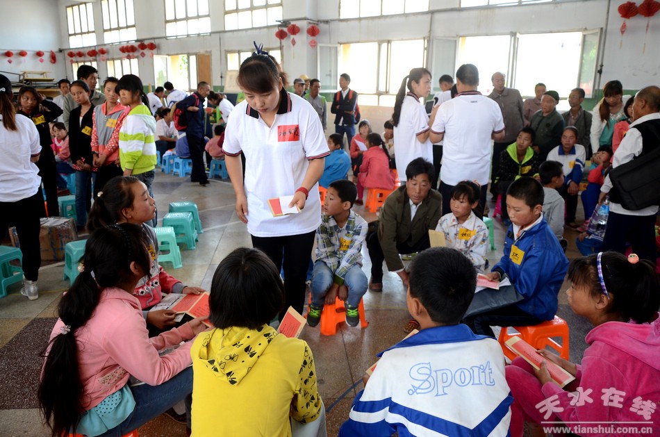 8月29日,清水縣舉行“一對一 獻愛心”資助物資發(fā)放活動,“一對一 獻愛心”貧困兒童資助協(xié)會的志愿者為該縣126名貧困兒童、孤兒和單親孩子發(fā)放了好心人捐贈的現(xiàn)金共計10萬元,物資2000余件,并與孩子們開展了互動活動。