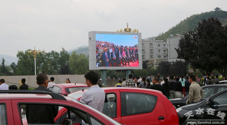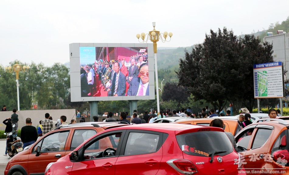 (在清水縣軒轅廣場周邊,路過的司機也停下來觀看閱兵現(xiàn)場直播)