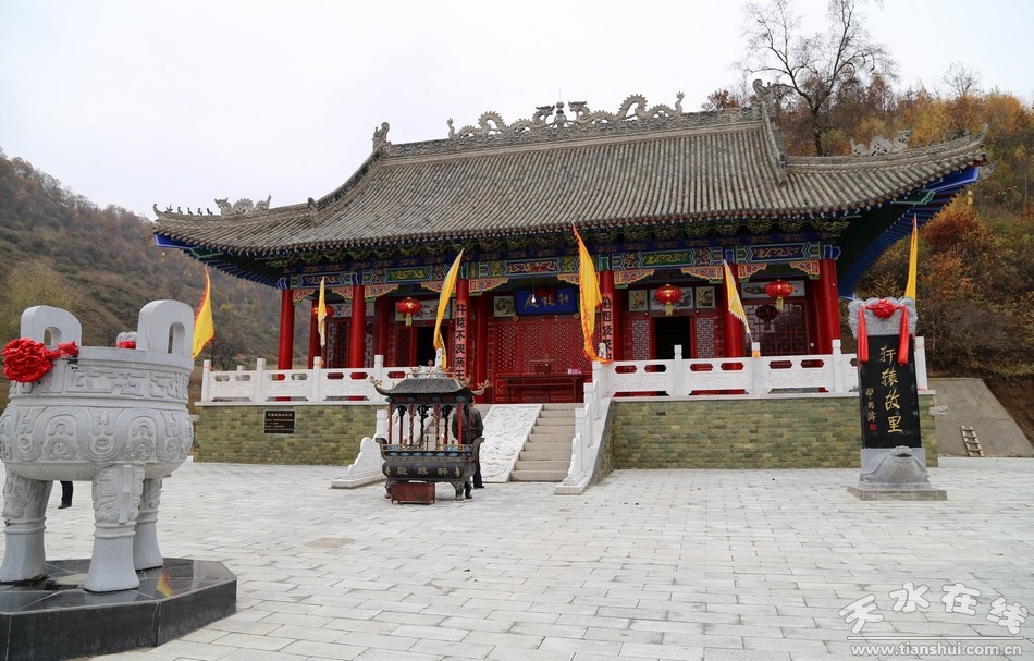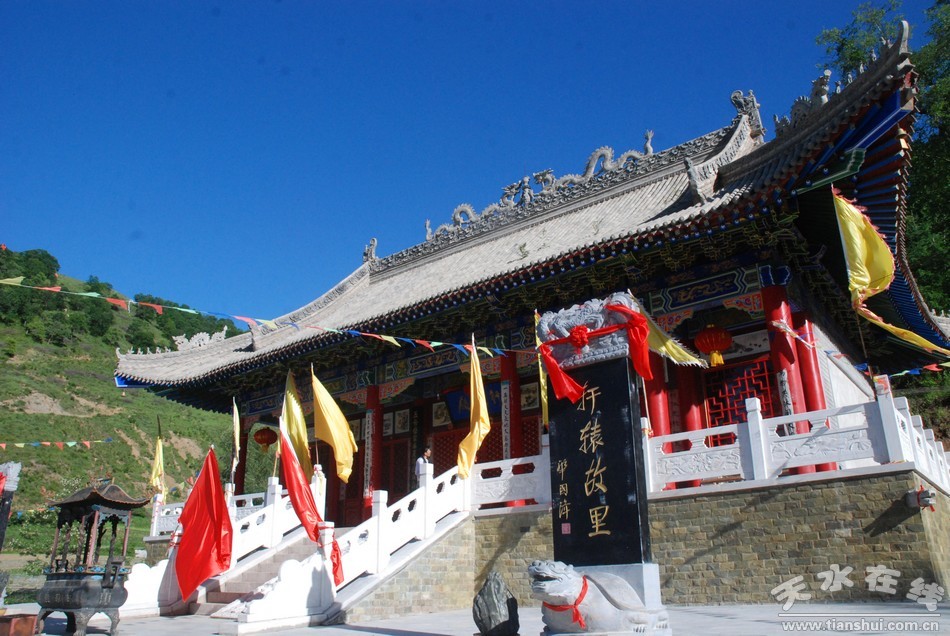 早年,清水縣在三皇溝曾建有三皇廟。 20 世紀 70 年代修梯田時,曾在廟基上翻出過瓦礫磚塊。 1993 年春,三皇溝村民犁地時,翻出過兩塊方磚。據當地年長的村民說,三皇溝原蓋有三皇廟,對面有戲臺。至今,村民稱軒轅黃帝為"軒王爺"或"三皇爺"。后來,由于交通不便,先移到縣城窯莊溝,后移建到永清堡下。 1943 年,國民黨 49 師駐清水時,拆除三皇廟,蓋了碉堡,剩下一廂房。 1952 年,有位老紅軍住過家。至今,人們把永清堡后的地方稱作"三皇廟塬"。廟前曾樹一"軒轅故里"石碑,系明朝學者胡纘宗所題。 清水縣城在民國時稱"軒轅鎮(zhèn)",解放初稱"軒轅區(qū)"?h城北 2 公里處的上邦鄉(xiāng)李崖村有兩孔窯洞遺址,日"軒轅窯",亦稱"軒口窯",相傳為軒轅之母攜帝棲居之所。解放前后,窯洞有畫廊。此處斷崖處有大量的細泥,壁薄紅色的龍山齊家文化陶片、灰坑層多處,屬龍山齊家文化遺存?脊抛C明,龍山齊家文化與黃帝同時代。