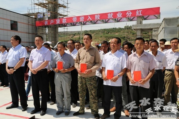 創(chuàng)新模式實現(xiàn)金融扶貧。在深入調(diào)研論證的基礎(chǔ)上,該縣用最簡便的方式確保符合條件的精準(zhǔn)扶貧戶得到免抵押、免擔(dān)保、5萬元以下、3年以內(nèi)的小額信用貸款。從3000多戶農(nóng)戶中篩選出有勞動能力參與企業(yè)就業(yè)、自愿出資入股的1000戶建檔立卡貧困戶,把精準(zhǔn)扶貧貼息貸款5萬元通過入股分紅的形式參與到實力較強(qiáng)、發(fā)展前景廣闊的天水華盛農(nóng)業(yè)綜合開發(fā)有限公司,建立起以貧困戶為核心、以扶貧效益為關(guān)鍵的扶貧開發(fā)利益聯(lián)結(jié)和互助合作機(jī)制,企業(yè)對帶資入股貧困戶勞動力優(yōu)先安置就業(yè),并對5萬元的入股資金按照每年不少于4000元進(jìn)行分紅。