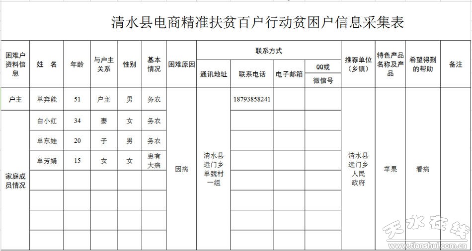 天水在線倡議:讓我們行動起來,幫助這個家庭盡早脫貧致富奔小康。