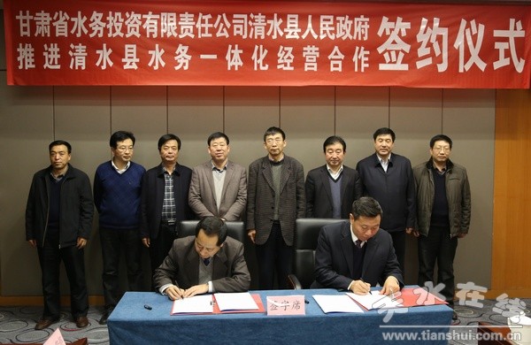 5、1月7日,甘肅省水務(wù)投資有限責(zé)任公司與清水縣人民政府在蘭州舉行推進清水縣水務(wù)一體化經(jīng)營合作簽約儀式,省水務(wù)投資有限責(zé)任公司總經(jīng)理霍子俊與清水縣委副書記、縣政府縣長馬越垠簽訂了推進清水縣水務(wù)一體化經(jīng)營合作協(xié)議。清水縣委書記劉天波,縣委副書記、縣長馬越垠,縣委常委、副縣長牛永禎參加了簽約儀式。