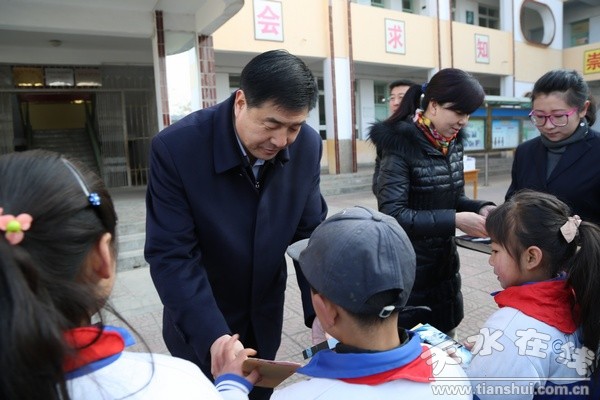 7、1月11日,清水縣委書記劉天波,縣關(guān)工委常務(wù)副主任韓新華,縣委常委、組織部長周濟等為永清鎮(zhèn)中心小學(xué)、紅堡鎮(zhèn)中心小學(xué)的49名貧困留守兒童發(fā)放了助學(xué)金和文具用品,關(guān)愛困難留守兒童,傳遞溫暖、營造希望。