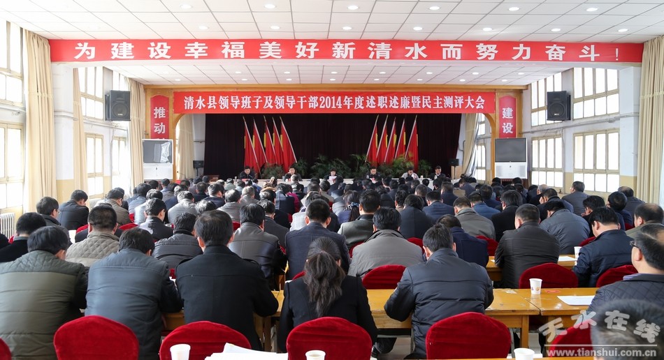 15、按照市委統(tǒng)一部署,1月22日——23日,天水市委常委、紀(jì)委書記、市委考核組組長李美華帶領(lǐng)市委考核組成員對清水縣2014年度市管領(lǐng)導(dǎo)班子及領(lǐng)導(dǎo)干部工作政績、黨風(fēng)廉政建設(shè)、基層組織建設(shè)和人才工作進行考核,并對全縣2014年度干部選拔任用工作及新選拔任用干部進行民主評議。民主測評大會上,清水縣委書記劉天波代表縣委常委班子作述職述廉報告和個人述職述廉報告。