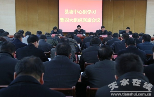 42、2月25日下午,清水縣委書記劉天波主持召開縣委中心組學(xué)習(xí)暨四大組織聯(lián)席會議,傳達學(xué)習(xí)了習(xí)近平總書記在2015年春節(jié)團拜會上的講話精神,傳達學(xué)習(xí)了全國宣傳部長會議和中央政法工作會議精神,安排部署近期各項重點工作。
