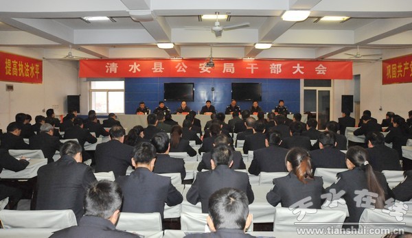 23、2月4日,清水縣公安局召開干部大會。天水市公安局副局長霍寶珊,清水縣委書記劉天波,縣委常委、組織部部長周濟出席會議。