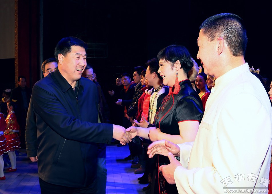 24、2月4日晚,清水縣2015年春節(jié)綜藝晚會在清水縣軒轅大劇院精彩上演。劉天波觀看演出并了慰問演職人員。