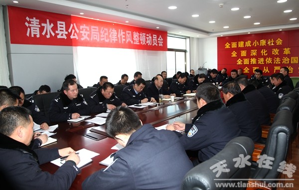 2月24日下午,清水縣公安局召開紀(jì)律作風(fēng)整頓動員會,決定從即日起集中開展為期一個月的以執(zhí)法辦案突出問題為主的全局民警紀(jì)律作風(fēng)專項(xiàng)整頓活動,切實(shí)解決群眾反映強(qiáng)烈的民警辦案環(huán)節(jié)及其他方面存在的各種問題。縣委常委、政法委書記王馬代出席會議并講話,縣公安局班子成員,各大隊(室)、派出所看守所主要負(fù)責(zé)人參加會議。