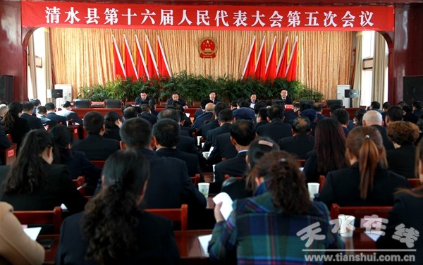 3月7日下午,清水縣第十六屆人民代表大會第五次會議舉行預備會議?h人大常委會主任趙云清,副主任宋宏亮、趙愛平、畢德祥、劉志偉出席會議并在主席臺就坐。