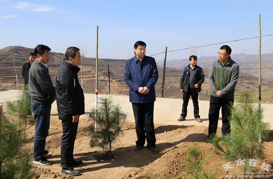 3月27日上午,清水縣委書記劉天波帶領縣委辦、農(nóng)工部、林業(yè)局、農(nóng)業(yè)局、果業(yè)局等相關單位負責人,先后深入小泉峽生態(tài)長廊、白駝鎮(zhèn)化嶺梁5000畝中央財政補貼造林優(yōu)質核桃基地、黃門峽口至新城段、蒲魏梁退耕還林核桃示范基地、永清鎮(zhèn)蘇屲退耕還林示范點、北山義務植樹造林點等地,就果樹建園、行道樹栽植、退耕還林等全縣春季植樹造林工作進行督促檢查。