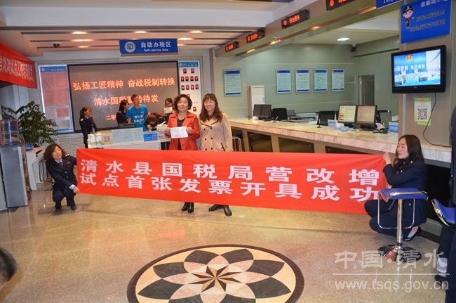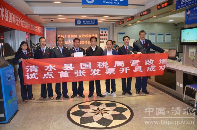 (清水縣國(guó)稅局辦稅服務(wù)廳成功開具營(yíng)改增試點(diǎn)工作正式啟動(dòng)后首張發(fā)票)